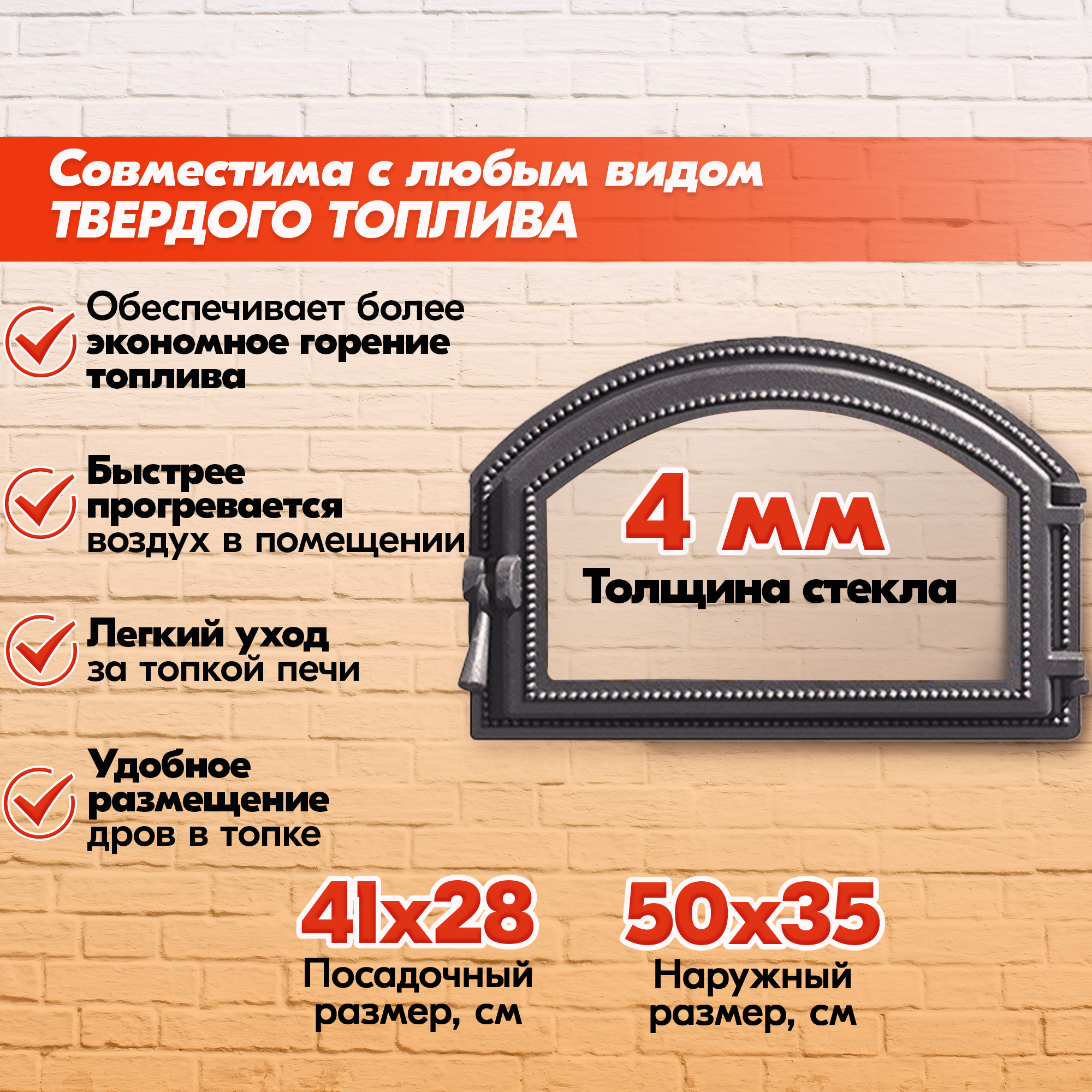 Наружный размер и посадочный размер для каждой печной дверки указан на изображениях в каждой карточке.