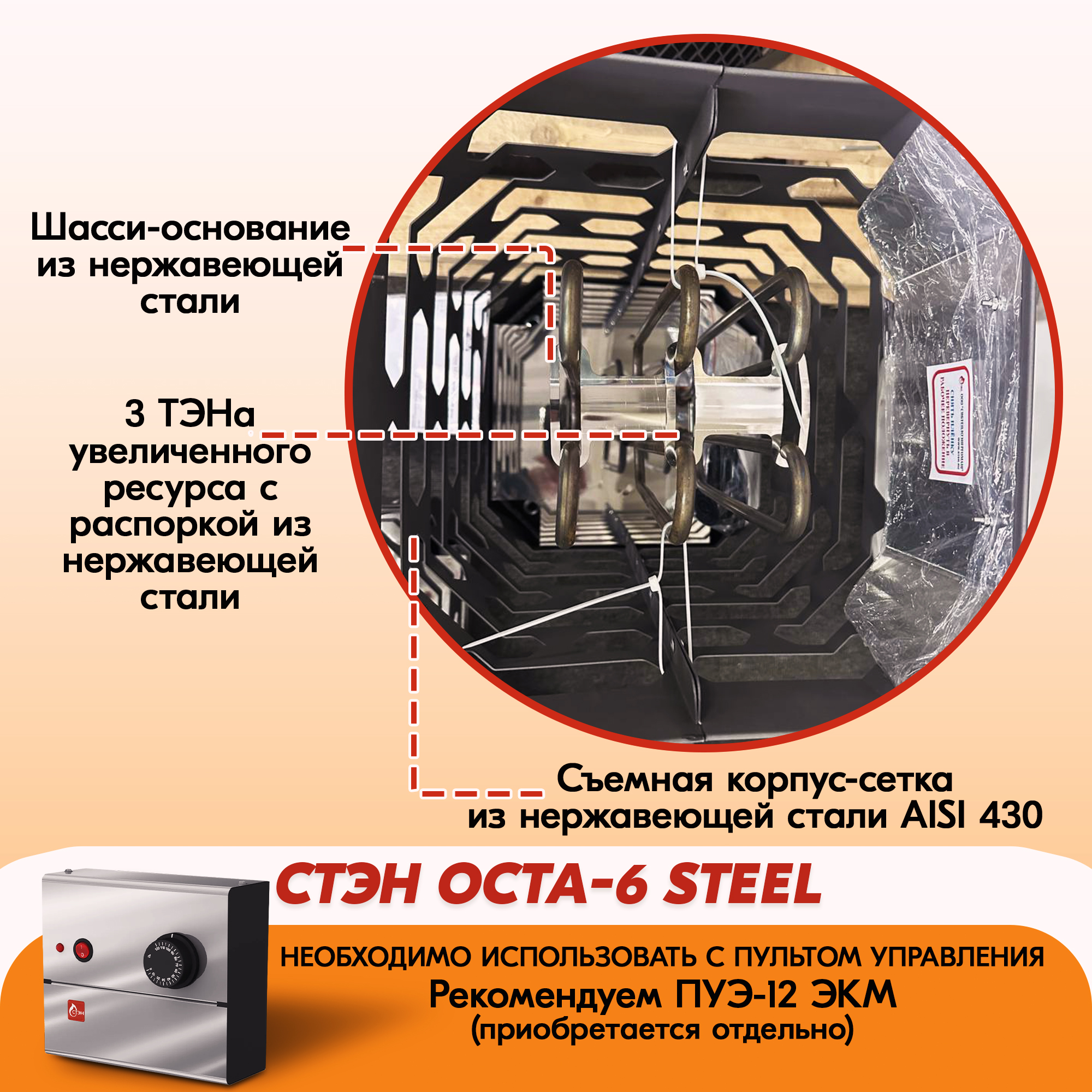 Электрическая каменка СТЭН ЭКМ 6 Octa steel в Архангельске | Доставка по России