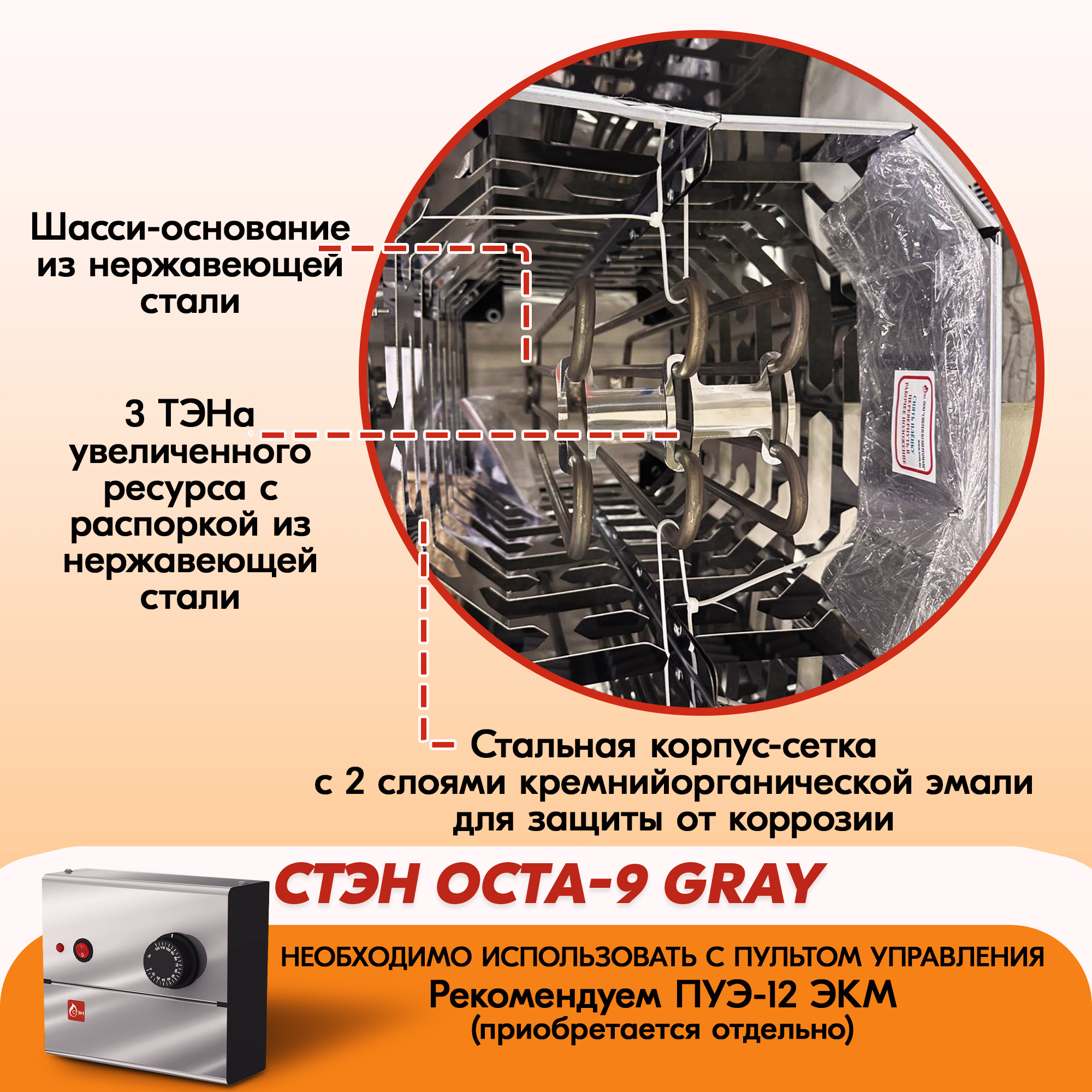 Электрическая каменка СТЭН ЭКМ 9 Octa gray в Архангельске | Доставка по России