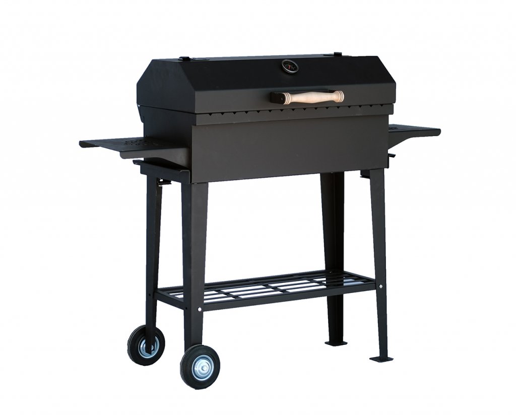 Специальная ручка для транспортировки, а также колеса позволяют легко переместить гриль-барбекю по загородному участку.
