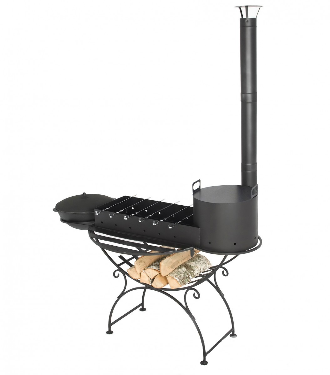 Мангал "Удачный" 12л. предназначен для приготовления пищи под открытым небом. Особенностью мангала является печь под казан с высокой вытяжной трубой самоварного типа. Дым, выходящий из трубы, не мешает окружающим. На мангале можно одновременно готовить пищу на шампурах и в казане. Для удобства транспортировки и хранения мангал имеет сборно-разборную конструкцию.