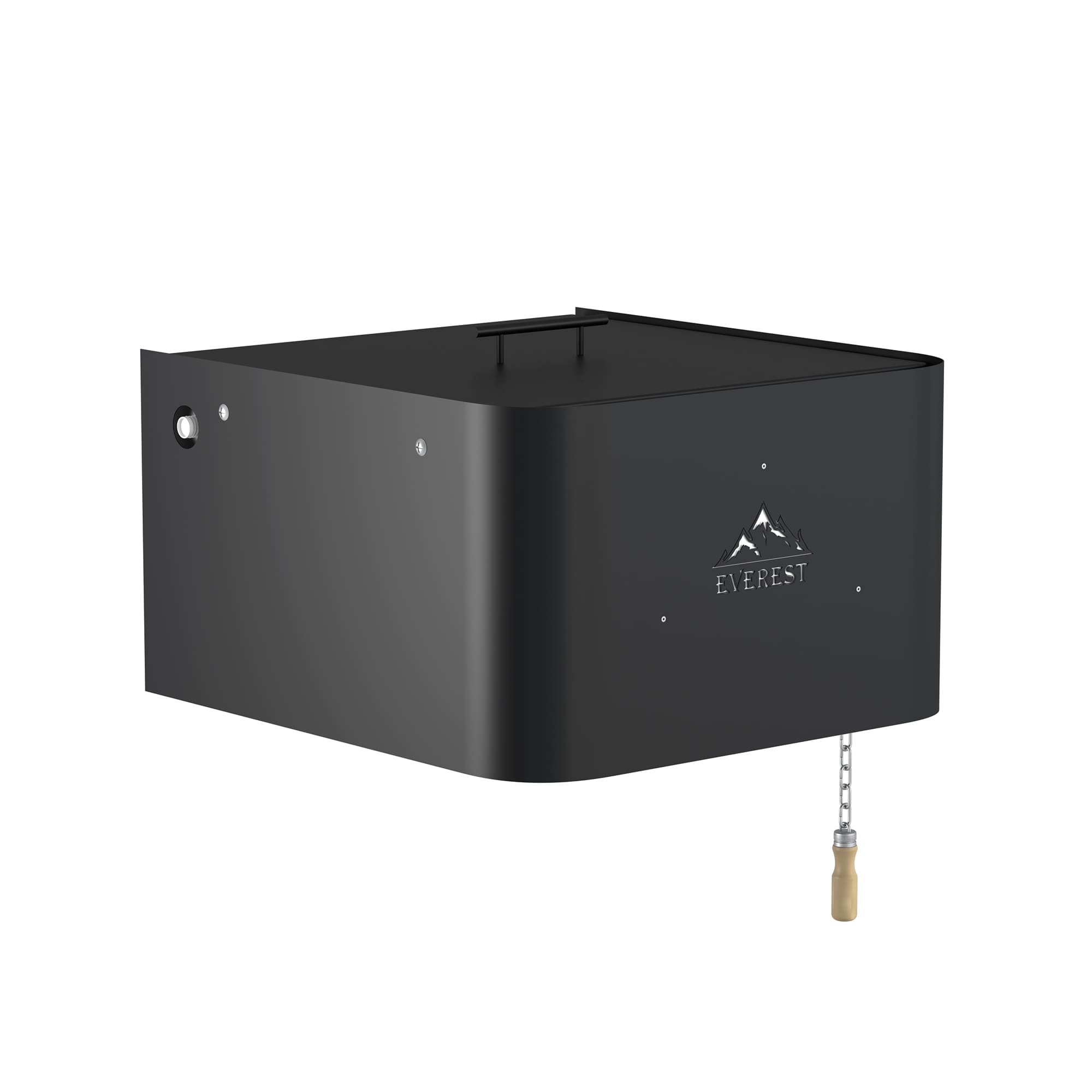 Обливное устройство ЭВЕРЕСТ представляет собой бак из нержавеющей стали, автоматически наполняемый водой. Количество воды в баке регулируется с помощью клапана подачи воды. Максимальный объём воды в баке – 35 литра.