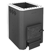 Кожух-конвектор создает мощный горячий конвекционный поток, равномерно прогревающий парилку, и экранирует жесткое инфракрасное излучение, исходящее от раскаленных стенок топки. Вентилируемая вместительная каменка прогревается пламенем с нескольких сторон и эффективно нагревает камни.