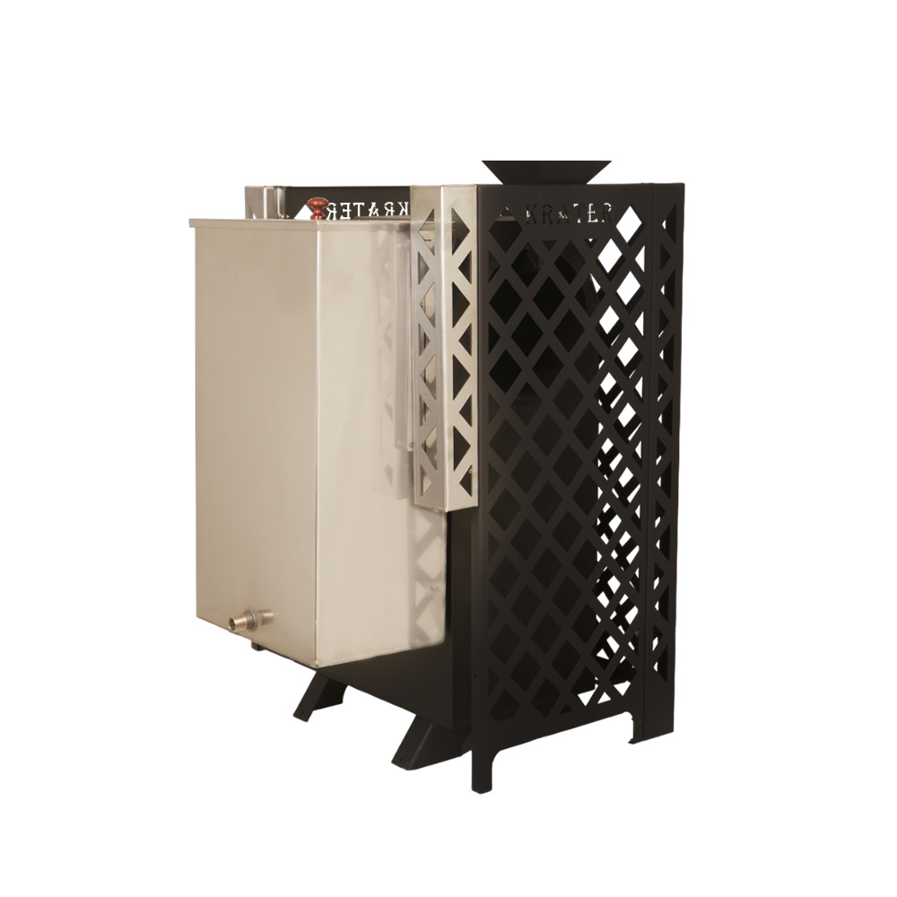 Закрытая каменка и бак для воды обеспечивают равномерное и мощное горение дров, а также стабильную температуру в парилке.