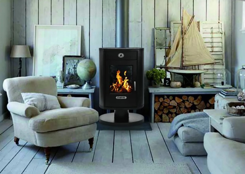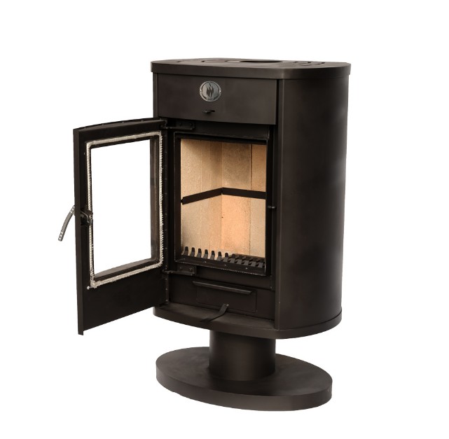 Большое жаропрочное стекло изготовлено по системе “чистое стекло”. Это дает возможность контролировать процесс горения без открывания топочной дверцы, а также наблюдать за живым огнем.