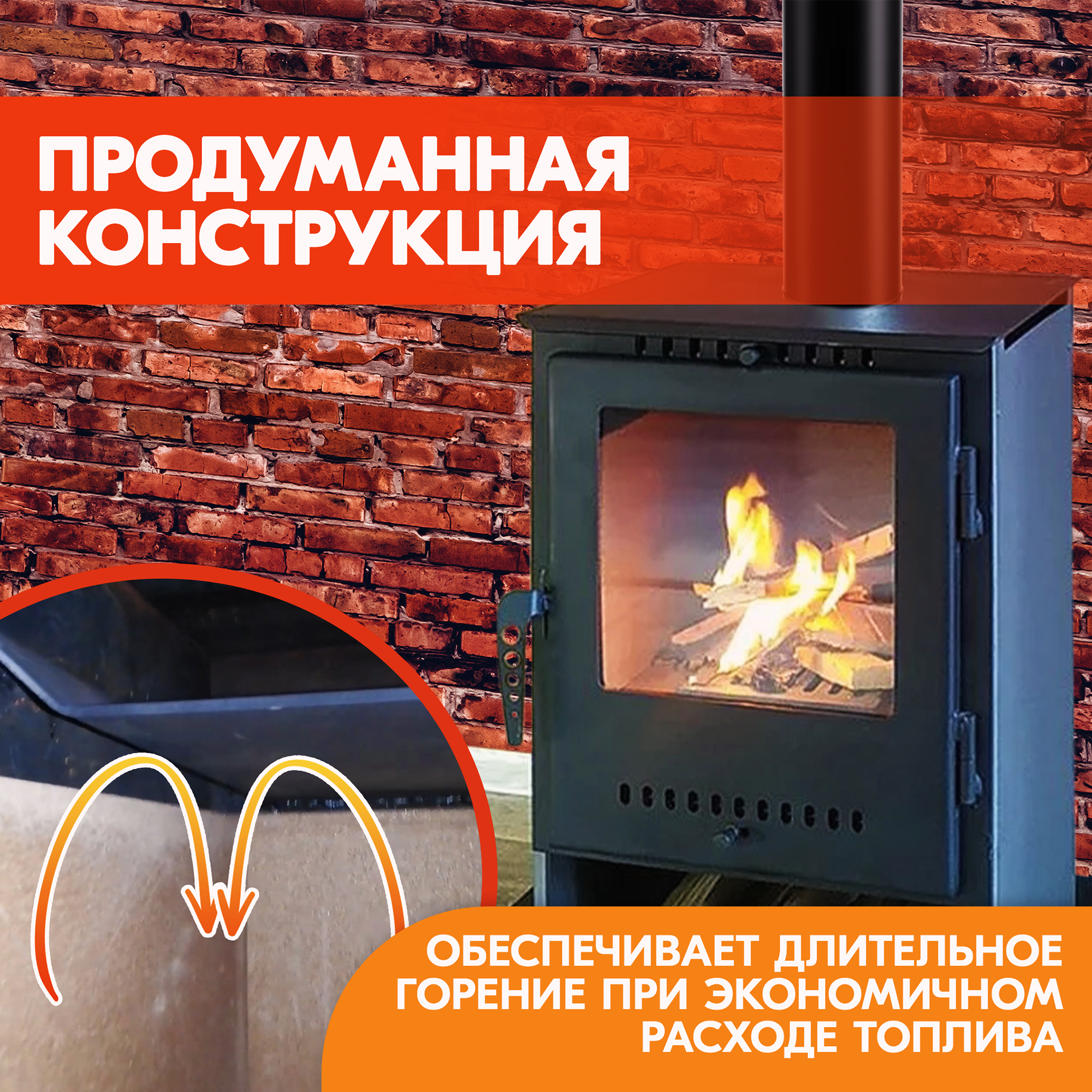 Благодаря стальному корпусу, печка быстро прогревает воздух в помещении.