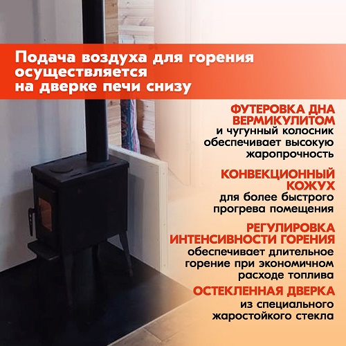 Печка проста в эксплуатации и станет незаменимым элементом для отопления вашего загородного дома или дачи, при этом тепло в вашем доме не будет зависеть от перебоев электричества.
