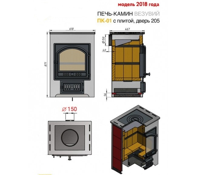 Практичного хозяина порадует экономичный расход дров и долгая продолжительность сохранения комфортной температуры в помещении. Не менее 5 часов после одной закладки.