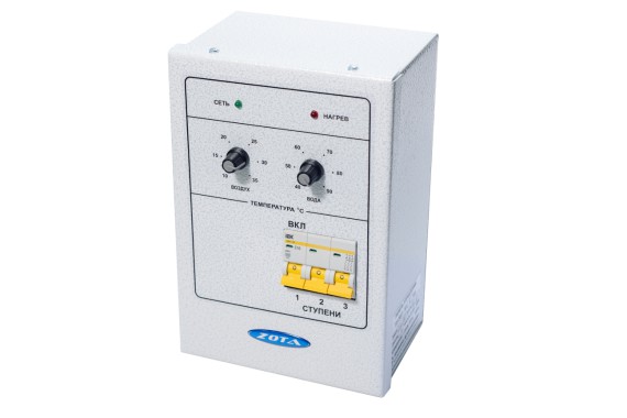 Панель управления ПУ ЭВТ-И1 предназначена для управления электрокотлами мощностью до 15 КВт. Является комплектующим изделием электрокотлов ZOTA «Econom» мощностью от 3 до 15 кВт. Панель управления обеспечивает оптимальную работу системы в заданных Вами режимах, автоматически поддерживая температуру воздуха в помещении от +10 до +35°С и воды на выходе из котла от +40 до +90°С. Наличие ступеней мощности позволяет более экономно использовать потребляемую электроэнергию. Необходимое количество работающих ступеней мощности выбирается вручную с помощью переключателя.