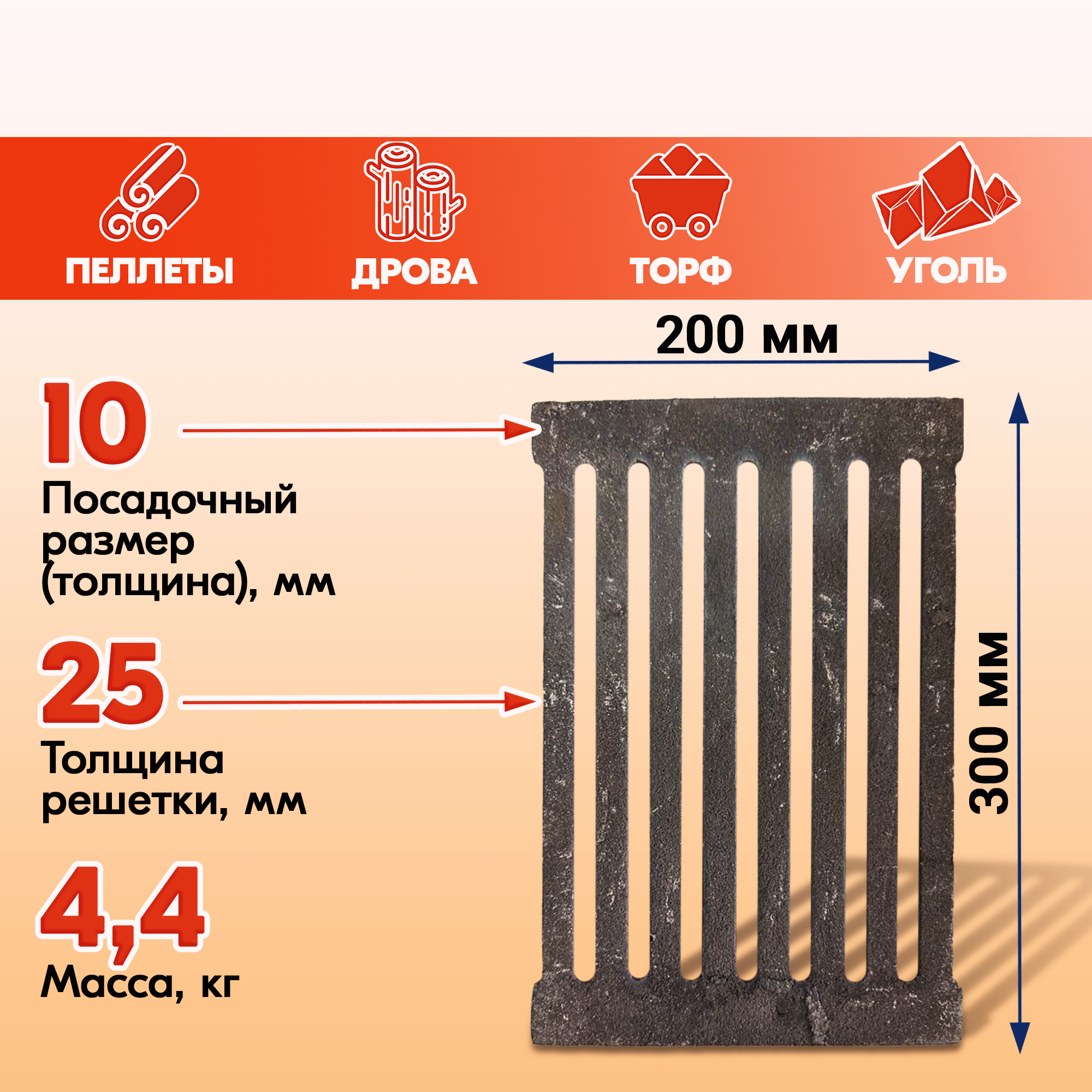 Решетка колосниковая РУ-2 (300х200) чугунная для печи и котла,правильные колосники для печки и котлов, литье для печи