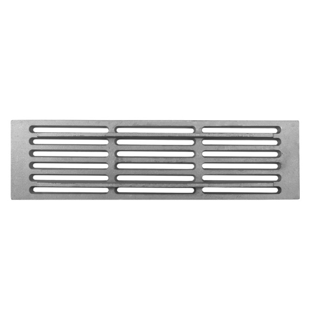 Решетка колосниковая промышленная РУ-П-5 предназначена для топки углем. Решетки колосниковые выполняются цельными из чугуна. В решетках имеются отверстия, через которые подается воздух к топливу и просыпается зола в поддувало. Решетка используется для размещения и просушивания топлива. Важной функцией решетки колосниковой РУ-П-5 является то, что она производит распределение потока воздуха из отделения для золы и обеспечивает качественную тягу. В комплексе с дверцей  это позволяет осуществлять контроль и регулировку пламени. Что касается площади просветов, то хороший чугунный колосник РУ-П-5 должен иметь величину данного показателя в пределах 40 %. А вот снижение площади просвета может привести к недостаточно полному сгоранию топлива и повышению образования газов. Постоянное воздействие высоких температур, одновременно охлаждение снизу и механические нагрузки является серьезным испытанием на прочность. Поэтому чугун должен быть высокого качества.
