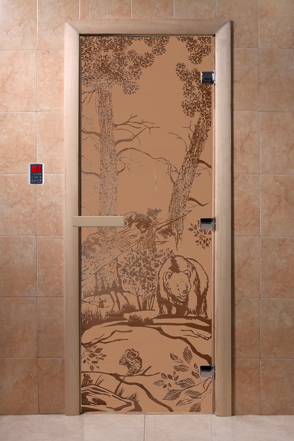 Дверь для сауны "Мишки в лесу" (матовая) 190х70 в Архангельске | Доставка по России