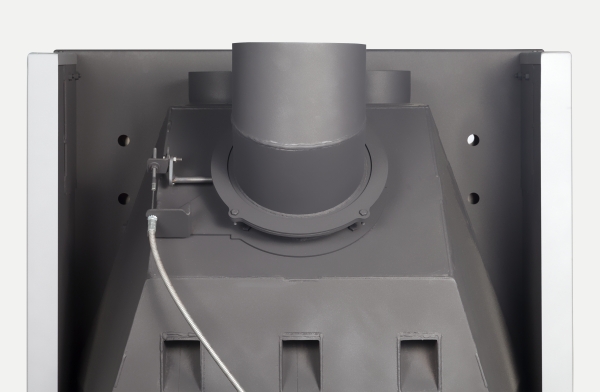 •Встроенная шиберная заслонка позволяет увеличивать/уменьшать сечение дымового канала и регулирует мощность топки.