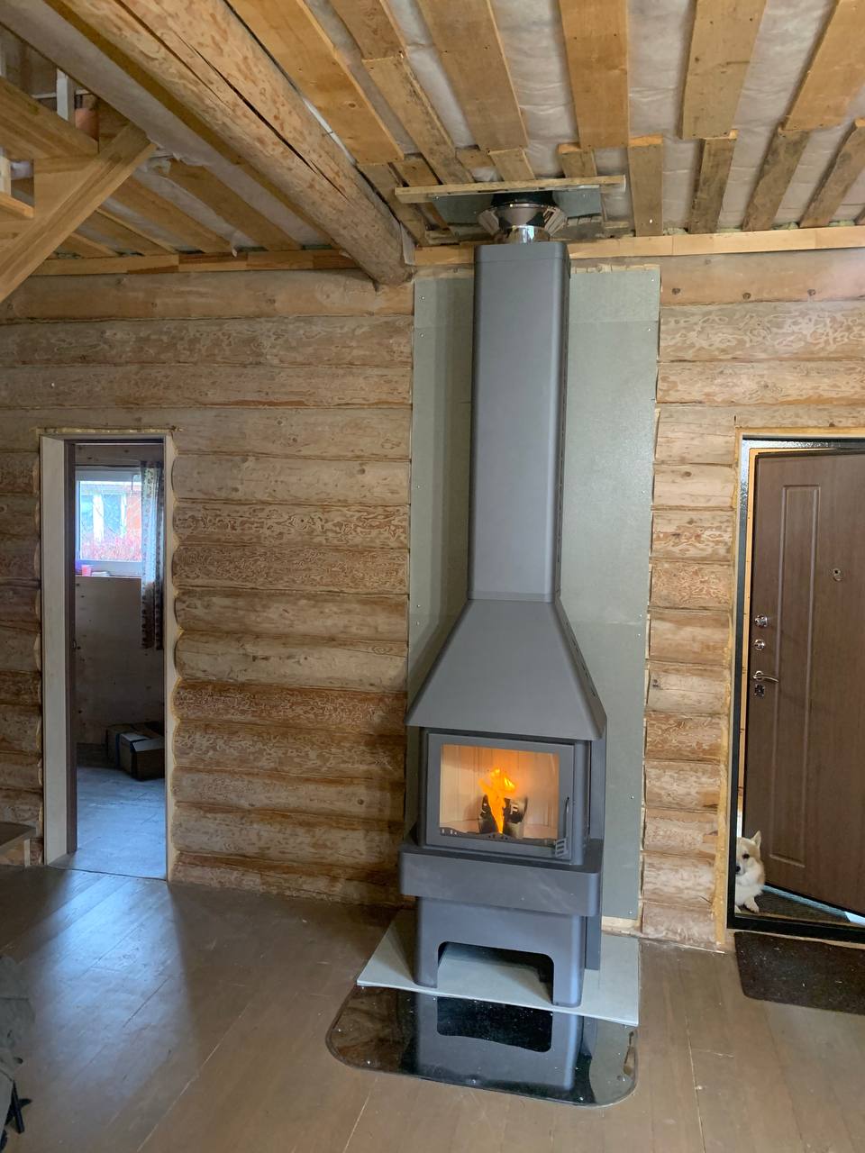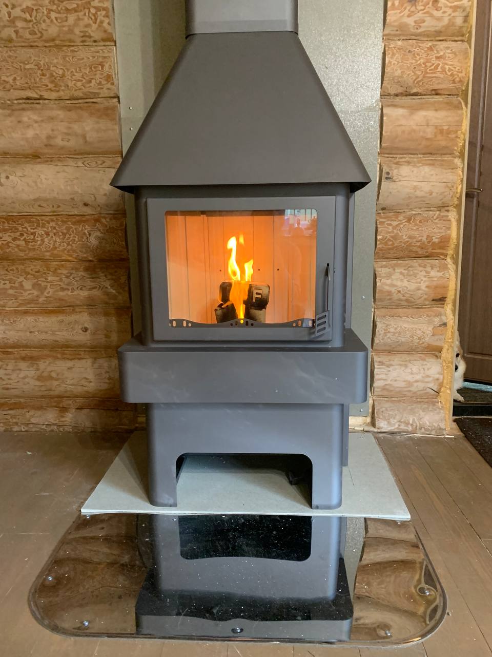 Печь-камин Бавария 3 стекла ,дымоход Теплов и Сухов ,Плита Фиброцементная