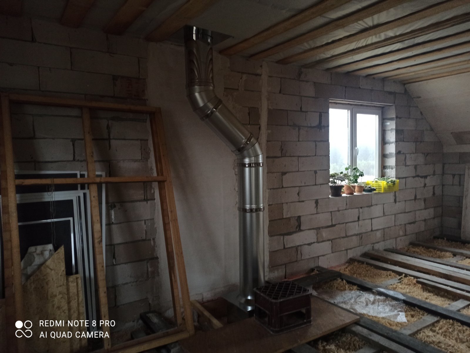 Установка каминой топки и монтаж дымохода Теплов и Сухов под отделку