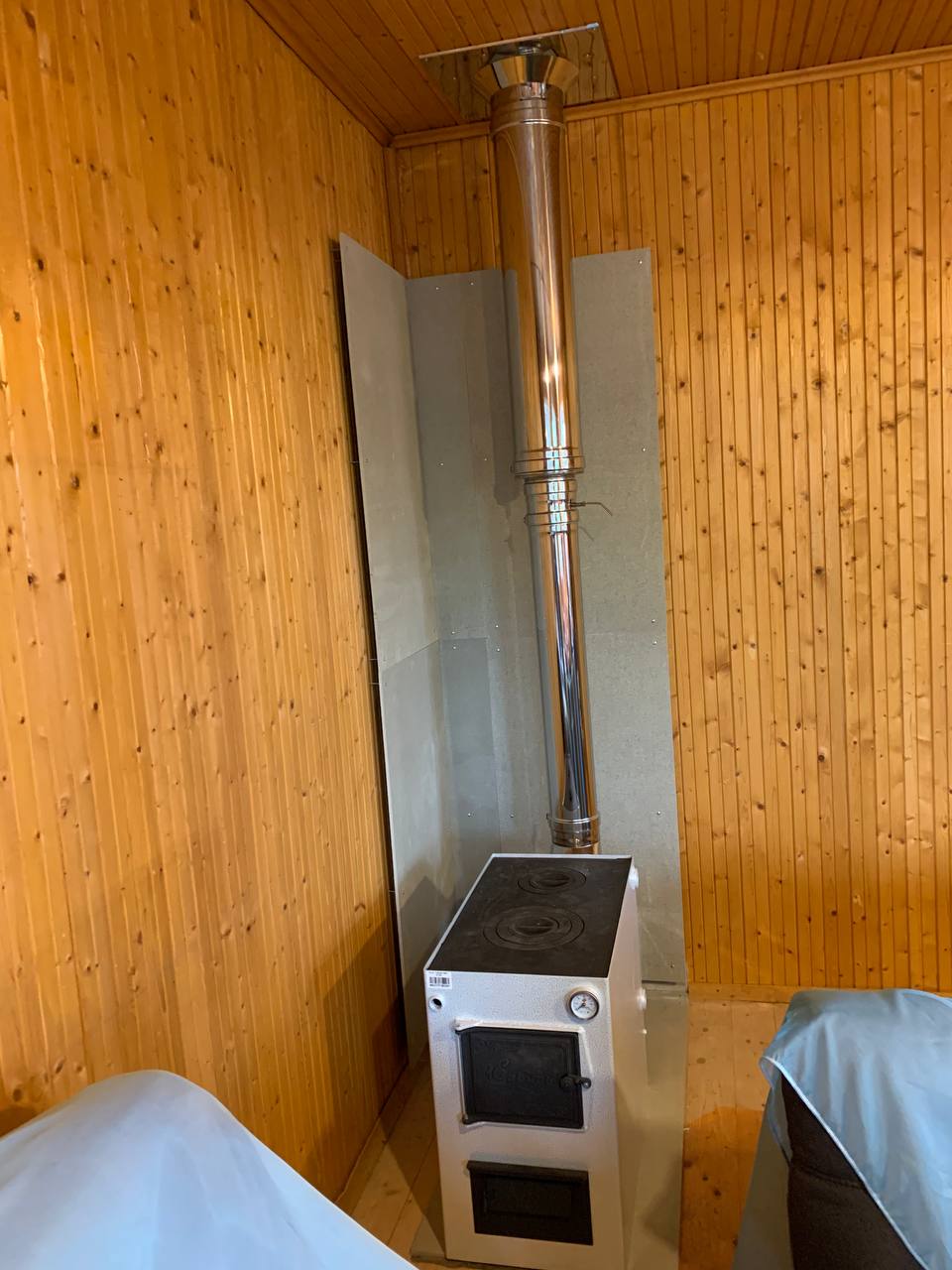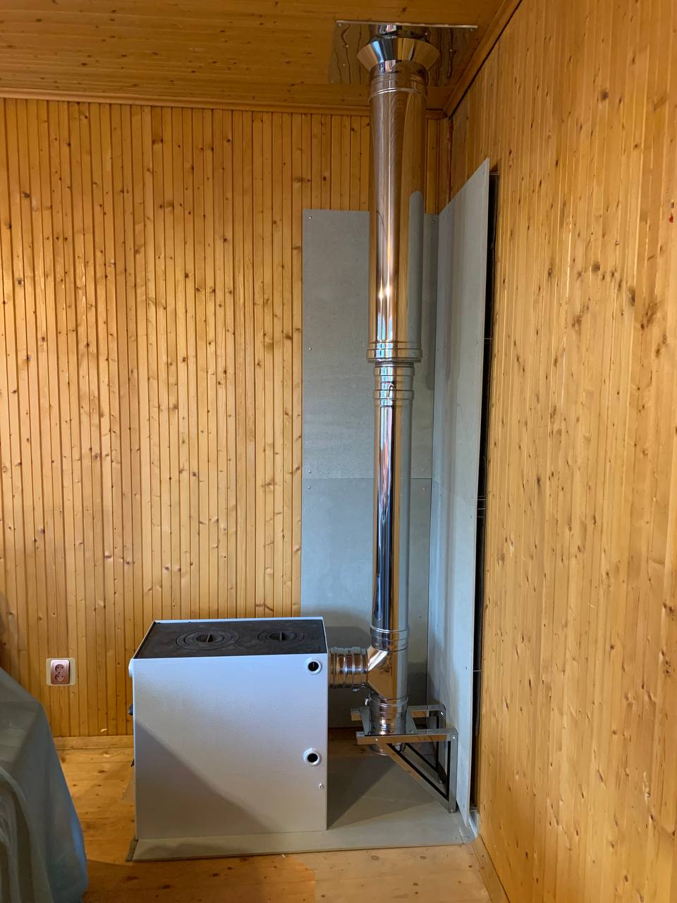 Монтаж Котела твердотопливного НМК Сибирь КВО-20 , Комплект дымохода Тис , плита Фламма
