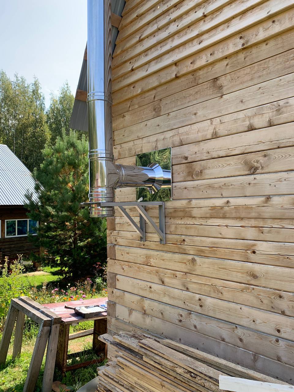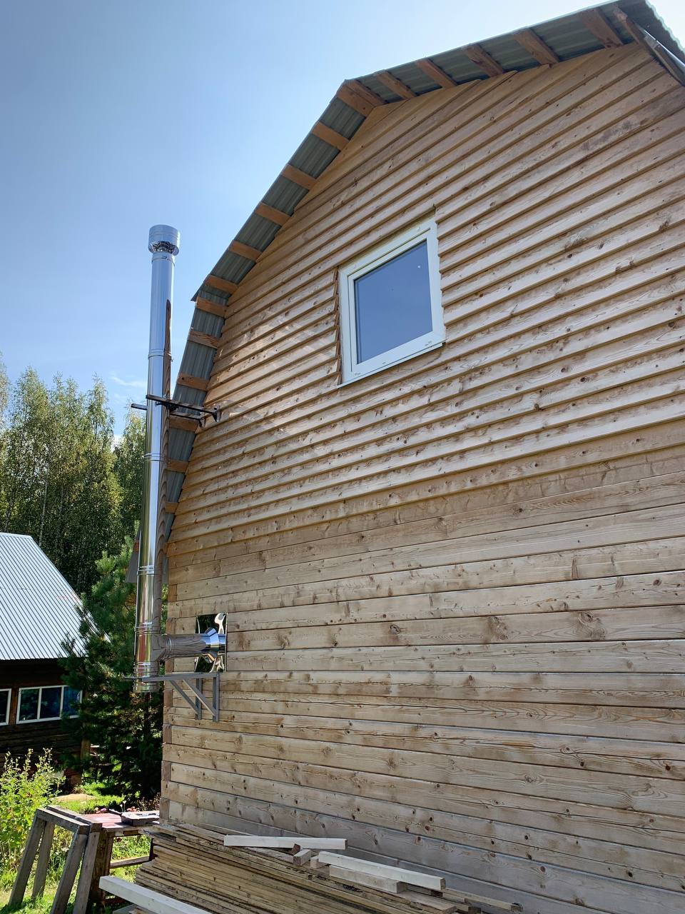 Установка печи-камина Бахтинка и монтаж дымохода.